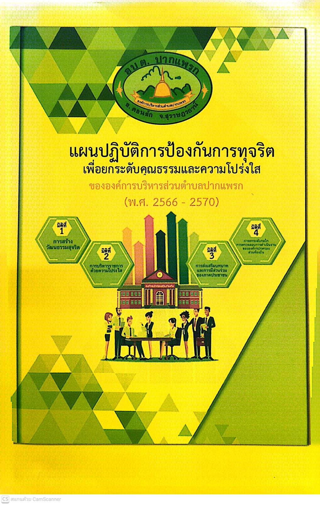 แผนปฏิบัติการป้องกันการทุจริตประจำปี องค์การบริหารส่วนตำบลปากแพรก |