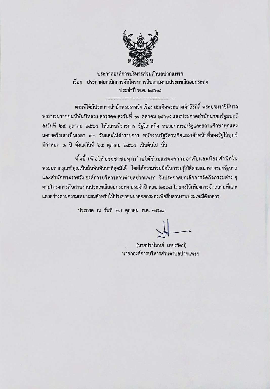ประกาศยกเลิกการจัดโครงการสืบสานงานประเพณีลอยกระทง ...